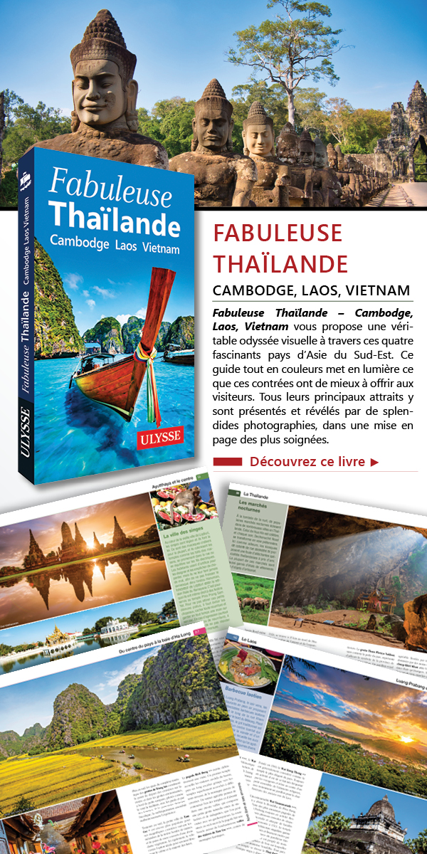 Fabuleuse Thaïlande - Cambodge, Laos, VietnamFabuleuse Thaïlande – Cambodge, Laos, Vietnam vous propose une véritable odyssée visuelle à travers ces quatre fascinants pays d’Asie du Sud-Est. Ce guide tout en couleurs met en lumière ce que ces contrées ont de mieux à offrir aux visiteurs. Tous leurs principaux attraits y sont présentés et révélés par de splendides photographies, dans une mise en page des plus soignées. Découvrez ce livre ► |
