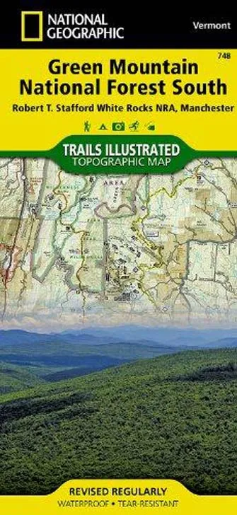 National Geographic’s Trails Illustrated map of Green Mountain National Forest South is the perfect travel companion for outdoor enthusiasts seeking to enjoy the four season recreation experience of the area. Expertly researched and created in cooperation with the U.S. Forest Service and others, the map delivers unparalleled detail of the forest from the city of Rutland to its southern boundary and includes such popular points of interest as Robert T. Stafford White Rocks National Recreation Area; Coolidge State Forest; Big Branch, Lye Brook, Glastenbury, George D. Aiken and Peru Peak Wilderness Areas; Killington, Mount Snow and Stratton Mountain Ski Areas; Harriman and Somerset Reservoirs; and Jamaica and Lake Shaftsbury State Parks.
