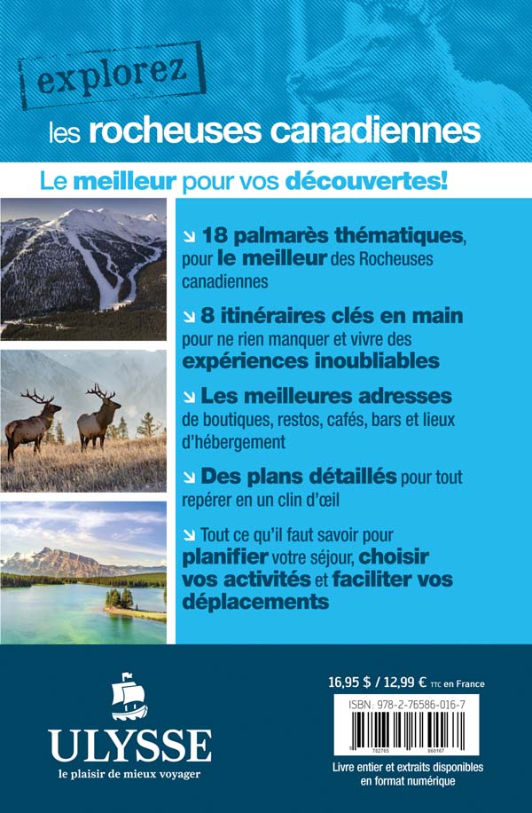 Ce guide vous invite à découvrir les Rocheuses, cette chaîne de montagnes de l’ouest du Canada, et à visiter ses plus beaux sites naturels, comme les parcs nationaux Banff, Jasper, Kootenay et Yoho, la Bow Valley Parkway, ainsi que Lake Louise et Golden.