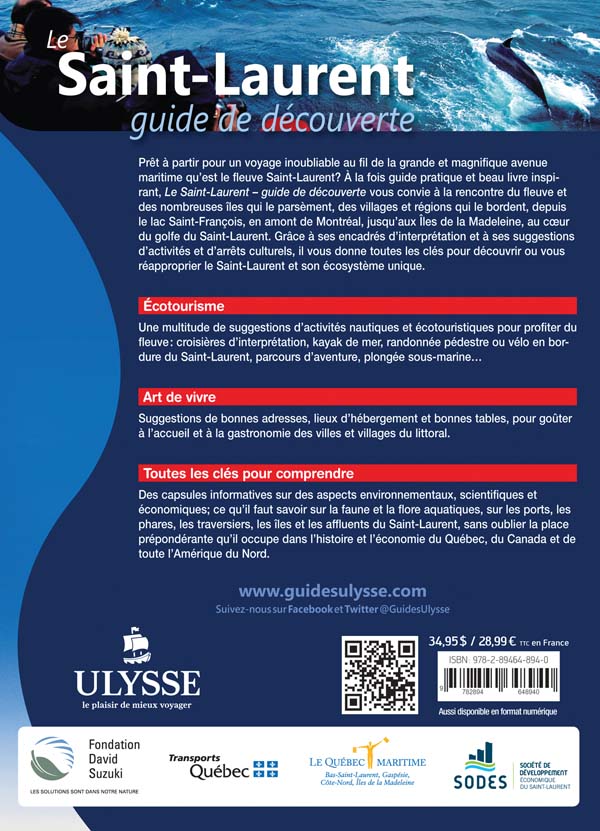 Le Saint-Laurent – Guide de découverte est publié par Ulysse, en partenariat avec la Fondation David-Suzuki, le Québec maritime et la Société de développement économique du Saint-Laurent (SODES).