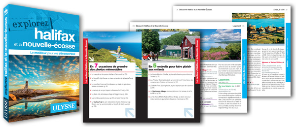 Guide inspirant orné de splendides photographies, Explorez Halifax et la Nouvelle-Écosse présente cinq itinéraires clés en main pour se plonger dans l’ambiance chaleureuse et la personnalité unique des différentes régions de la province : « Halifax », propose une exploration des différents quartiers de la ville et de ses environs, depuis la Citadelle jusqu’aux jardins publics en passant par l’animé Waterfront Boardwalk et l’incontournable Maritime Museum of the Atlantic; « L’isthme de Chignecto », bordé d’un côté par la baie de Fundy, célèbre pour ses grandes marées et pour les spectaculaires falaises du Cape Chignecto Provincial Park, et de l’autre par le détroit de Northumberland où s’étendent des plages aux eaux idéales pour la baignade; « L’ancienne Acadie », aussi lovée dans la baie de Fundy, une région ponctuée de vignobles, de jolis villages et de lieux historiques marquant le début de l’épopée française en Amérique, dont Port-Royal, Fort-Anne et Grand-Pré; « La route des phares » mène à la découverte des paysages maritimes parmi les plus pittoresques de la province et de lieux emblématiques comme Lunenburg et Peggy’s Cove, sans oublier le parc national et lieu historique national Kejimkujik qui permet d’en apprendre davantage sur la nation mi’kmaq; « L’île du Cap-Breton », dont les paysages d’une beauté à couper le souffle sont traversés par le célèbre Cabot Trail, un road trip inoubliable.