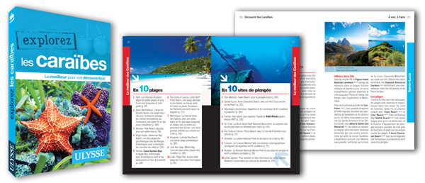 Agréable à consulter et ultra-pratique grâce à son format de poche et à sa structure compréhensible en un clin d’œil, le guide de voyage Explorez les Caraïbes est l’outil idéal pour planifier un voyage dans une ou plusieurs îles des Antilles. Dès les premières pages du livre, des listes thématiques illustrent ce que les Caraïbes ont de mieux à offrir et facilitent l’organisation d’un séjour personnalisé, tout en ciblant les incontournables : les plus beaux jardins, parcs nationaux, plages, sites de plongée, volcans, les expériences uniques et culturelles, le meilleur de la cuisine locale, les sites de l’UNESCO et les bijoux d’architecture. Le chapitre « Explorer les Caraïbes » présente ensuite les attraits des destinations caribéennes, île par île. Pour chacune d’entre elles, une section indique la langue parlée et la monnaie utilisée et un système d’étoiles guide les lecteurs vers les sites qui se démarquent. De plus, une sélection de bons restaurants ainsi que des indications sur les meilleurs achats à y faire et sur l’offre en matière d’hébergement sont incluses. Un plan clair et précis de chaque île, avec localisation des principaux ports, attraits, plages, parcs et aéroports permet également de se repérer. Le chapitre « Pratique », truffé de renseignements utiles pour mieux voyager, complète l’ouvrage. Enfin, une carte générale des Caraïbes et un lexique français-anglais-espagnol se trouvent sur les couvertures dépliables.