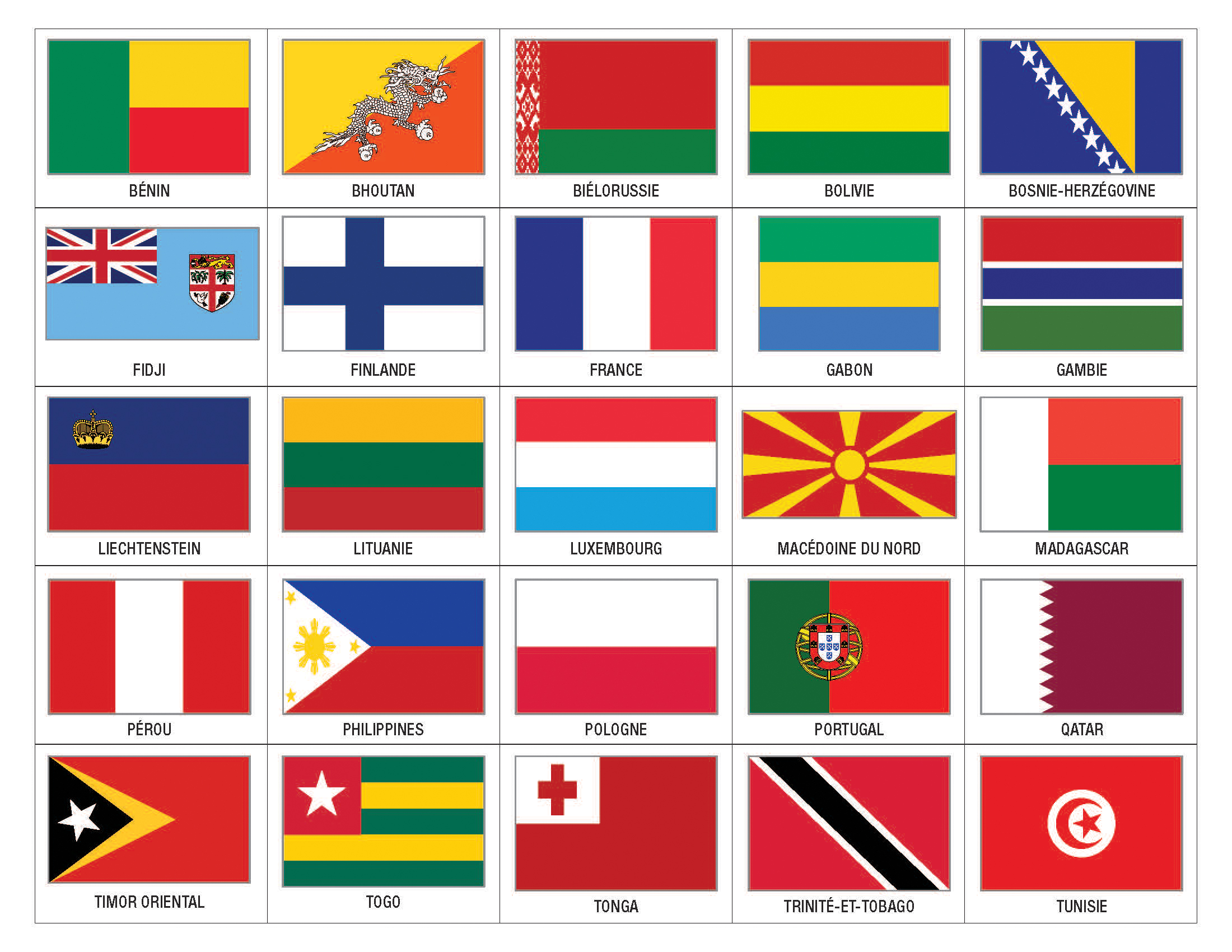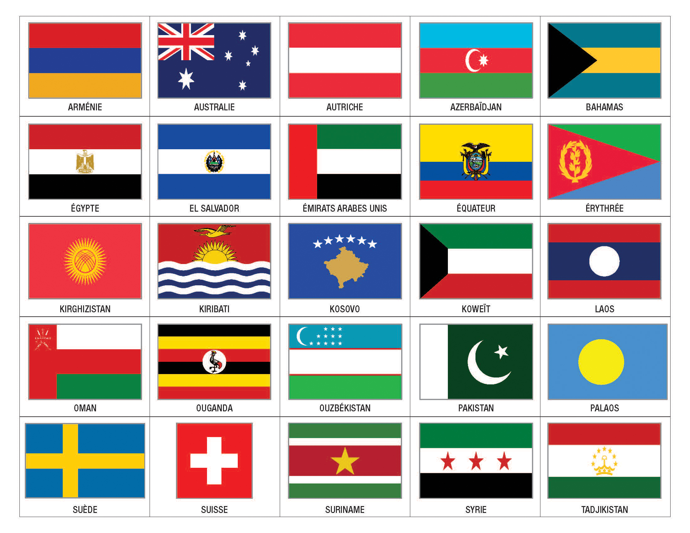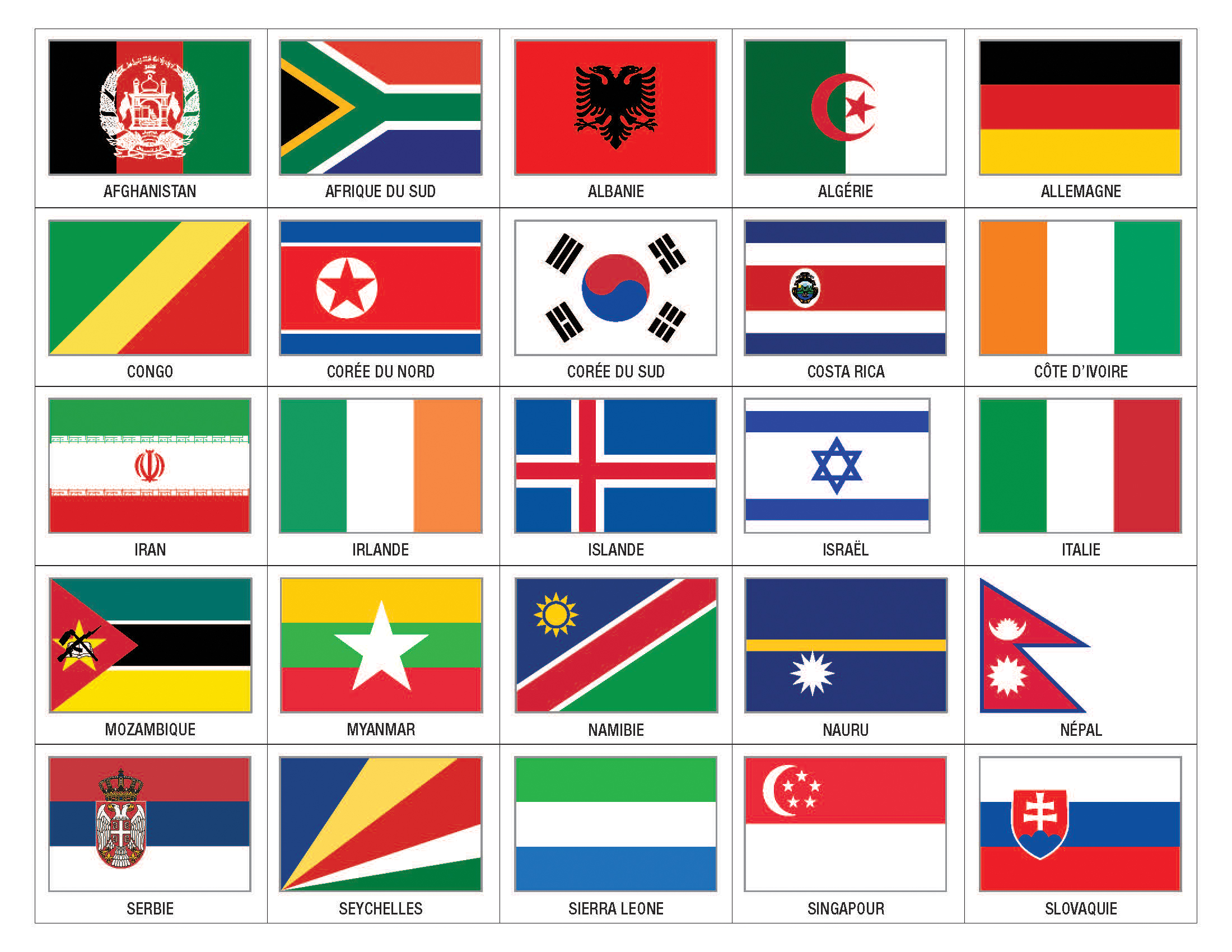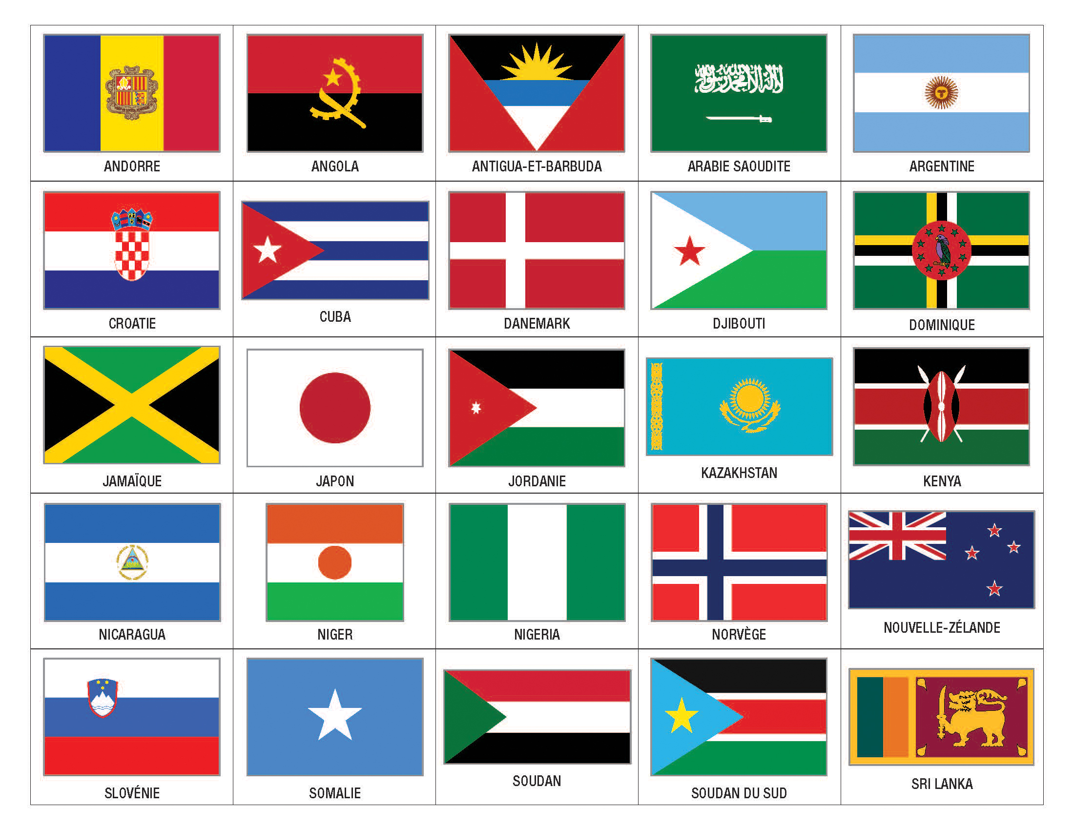 Jeu drapeaux du monde Accueil / Contenus / Art de vivre / Jeu drapeaux du monde Version simplifiée de la carte du monde Ulysse Cherche un drapeau et trouve son pays ! Tu auras besoin : D’une carte du monde politique De la liste des drapeaux que tu trouveras ci-dessous Voici les étapes de ce jeu qui te permettra d’utiliser les coordonnées géographiques (à la jonction d’une lettre et d’un chiffre) pour trouver un pays sur une carte du monde. Imprime et découpe les drapeaux ci-dessous (tu les trouveras aussi dans le fichier ici ) Place-les dans une boîte Pioche un drapeau Cherche-le sur la liste et repère ses coordonnées géographiques Trouve le pays sur la carte du monde Positionne ton drapeau sur son pays avec une gommette C