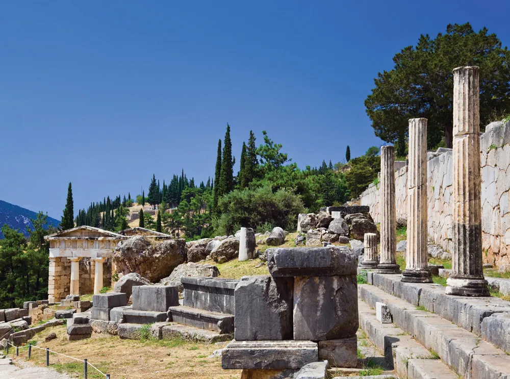 Delphes Accueil / Contenus / Europe / Grèce / Athènes et le Péloponnèse / Delphes Delphes | © Dreamstime.com/Nikolai Sorokin Bâti à flanc de coteau, au pied de la chaîne du mont Parnasse, avec vue sur le golfe de Corinthe, Delphes est sans doute le plus évocateur des sites archéologiques grecs. Nombril du monde pour les Anciens, le sanctuaire, dédié en été à Apollon et en hiver à Dionysos, abritait l'oracle le plus puissant de Grèce. Le long de la Voie Sacrée s'élevant depuis l'entrée du site, les cités firent chacune construire des bâtiments abritant les offrandes de leurs citoyens. Seul le trésor des Athéniens a pu être reconstitué. Le temple d'Apollon, de style dorique, abritait une statue en or du fils de Zeus. À l'intérieur, assise sur un trépied, officiait la Pythie. Messagère d'Apollon, cette femme de 50 ans au moins et de petite intelligence, choisie parmi le peuple, inhalait des fumerolles sourdant d'une fissure dans la roche, source de délires. Ses paroles, incompréhensibles, étaient traduites en vers par les prêtres en réponse aux questions des pèlerins. Au-dessus se trouvent le très beau théâtre et, plus haut, le stade le mieux préservé de Grèce. Le musée possède de magnifiques bronzes (dont le fameux Aurige), des frises et des métopes sculptés, des bijoux et l'omphalos, la pierre sacrée du temple d'Apollon, marquant le centre du monde - à l'endroit où deux aigles lâchés par Zeus aux extrémités de la Terre se rencontrèrent. En contrebas de la route d'Arachova, dans un cadre magique, se dresse la tholos, un temple circulaire de fonction inconnue.