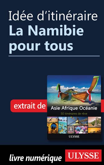 La Namibie est formée de hauts plateaux arides dominant un long littoral désertique sur l’océan Atlantique. Le territoire compte quelques curiosités particulières. On y trouve des empreintes de dinosaures dans les grès liasiques de la ferme d’Otjihaenamaparero, à Kalkfeld; la météorite de Hoba (plus grande météorite connue, avec ses 60 tonnes en un seul morceau, représentant aussi le plus gros bloc naturel de fer connu à la surface de la Terre) sur la ferme de Hoba West, près de Grootfontein; la forêt pétrifiée du Damaraland, près de Khorixas; les pétroglyphes de Twyfelfontein; l’oasis de Palmwag.Vous trouverez dans la présente section un choix incomparable de guides et de cartes pour bien préparer votre voyage en Namibie. Que vous comptiez découvrir la capitale Windhoek et sa vie culturelle, visiter les lieux historiques ou parcourir les sites naturels, vous aurez ici tout ce qu’il vous faut pour bien profiter de votre séjour.