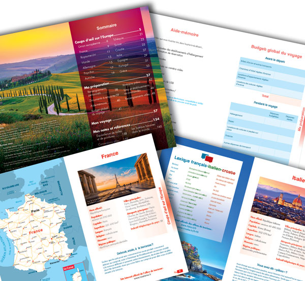 Journal de voyage EuropeCe journal de voyage unique, ponctué de citations, vous permettra de noter chaque jour impressions et souvenirs, ainsi que vos dépenses quotidiennes, pour un voyage allant jusqu’à trois semaines. Il vous offre également de nombreux conseils pratiques, ainsi que de l’information générale sur les principaux pays de l’Union européenne. Pour chaque pays, vous trouverez une fiche de renseignements et un encadré thématique, une carte géographique, un mini-lexique, des photos en couleurs et plus encore... Découvrez ce livre ► |